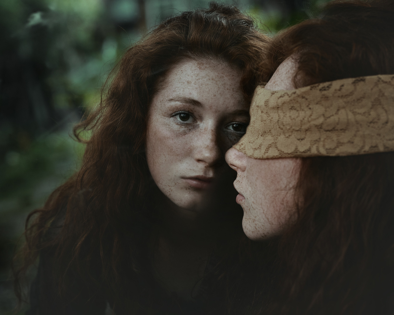 A hallmark of Raluca’s work is its meticulous planning. Her process begins long before the camera is ever lifted from its bag, often starting with a single word, a specific location, or a haunting phrase from a book. Inspiration for Raluca is often sudden and transformative. For instance, while reading Erin Morgenstern’s The Night Circus, she encountered a sentence describing a cabin lined with mirrors, each reflecting a different image of the character Prospero. This immediately triggered a vision for a project featuring an actor friend who is also a magician. She envisioned him in a room full of mirrors, with each reflection depicting a different facet of his identity: the actor, the magician, the lover, the masked man. Similarly, a walk in the woods can become an unplanned storyboard. Upon seeing symmetrical mounds on the edge of a forest, she immediately envisioned a "veiled woman with goat horns and feathers on her shoulders", a quiet guardian granting safe passage to another dimension.